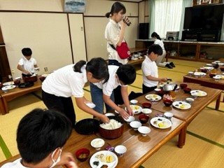 食事係が準備をし、朝食です。この後は、山登り。力を蓄え、登ります。