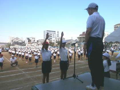 児童ちかいの言葉を岳野くんと石田くんが、行いました。