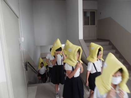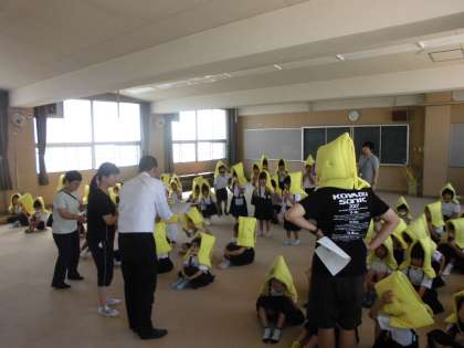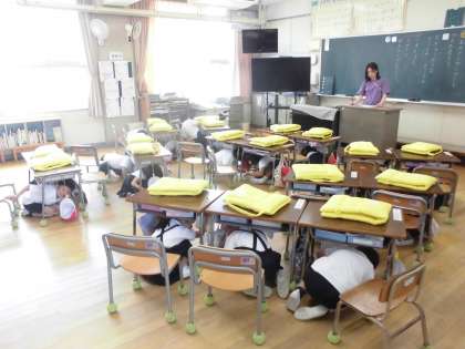 子どもたちは先生の話を真剣なまなざしで聞き、放送にしっかりと耳を傾け、静かに素早く避難することができました。地震が起きた時、どう行動するべきなのか、津波が来た時、どのように行動したらよいのか、学習した時間となりました。