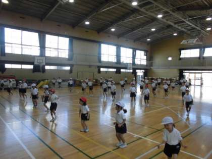 運動会に向けて、1年生と2年生の子どもたちが練習をがんばっています。