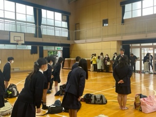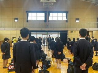 修学旅行に向けての出発式です。心配された雨も上がり、天気は回復傾向でホッとしています。