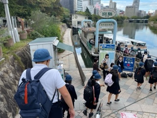 原爆ドーム横からフェリーに乗って、宮島に向かいます。