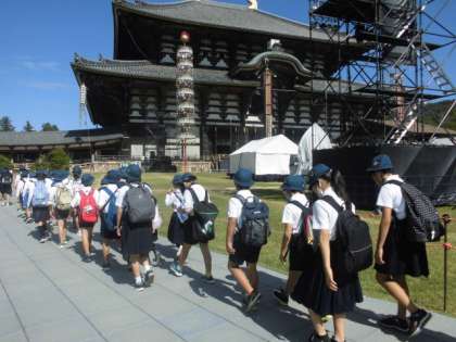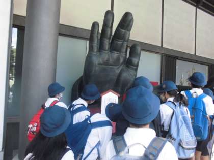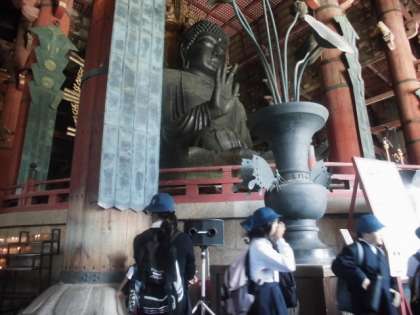 東大寺では大仏の大きさに見とれていました。「手のひらの上に何人くらいのれるかなあ」と思いをめぐらせていました。