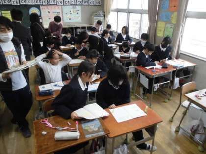 緊張していた子どもたちでしたが、先生の話をしっかりと聞いて自分たちの考えをどんどん発表したり友だちと考えを交流したり、いつも通り、しっかりとがんばっている姿を見せてくれた授業となりました。
