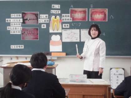 本日、大阪市教育委員会より講師の先生をお招きし、6年生対象の歯みがき指導をしていただきました。歯周病・生活習慣病についてや歯を磨く際の歯垢が残りやすい箇所についてブラッシングの実技もまじえながら教えていただきました。