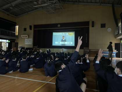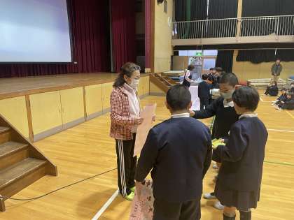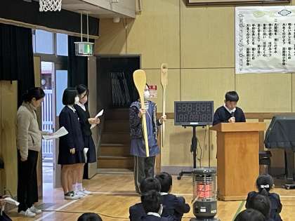 今週は給食週間です。本日の児童集会では、健康委員会の児童が給食調理員さんのお仕事を動画で紹介しました。にんじん等の野菜を星形やハート形に型抜きして提供している「ラッキーにんじん」を作成している様子を見た児童からは、「ラッキーにんじんを作るのは大変だなぁ。給食調理員さん、ありがとうございます。」という感想も聞かれました。