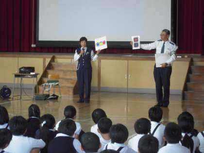 1.2.3年生は2時間目、4.5.6年生は3時間目に旭警察署の方に