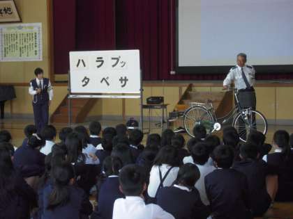 4.5.6年生は、自転車の正しい乗り方で「ハラブゥタベサ」(ハンドル・
