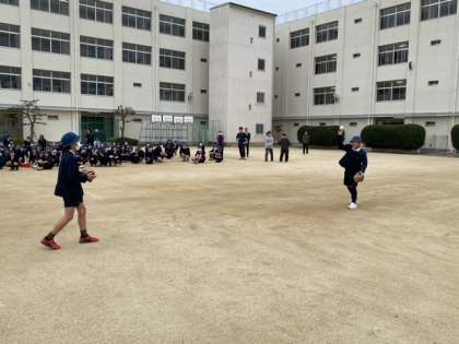 今一年生から順番にグローブを回していき、一人一人がグローブに触れ、写真を撮とうと企画しています。