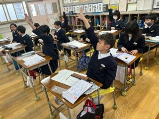 3年生が慣れない手つきでそろばんの学習をしました。子どもたちそれぞれ1つずつあるのと大きい指導者用のそろばんをさわるのを喜んでいました。