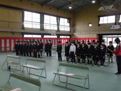 6年生は、練習に取り組む態度も一つ一つの動きや言葉がとても立派です。5年生は初めての練習でしたが、声がしっかり出ていて態度も立派でした。