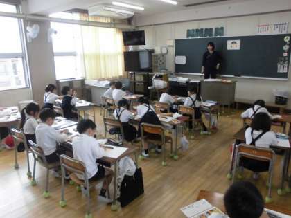 パスを使って画用紙いっぱいに自分の顔を描きました。
