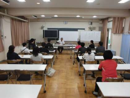 多目的室では、体育科の授業で大切なことや基本的なことなど、理論的な内容を教えていただきました。
