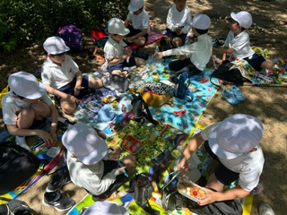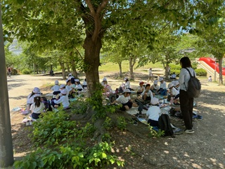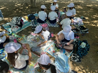 お楽しみのお弁当の時間です。みんな楽しそうです。