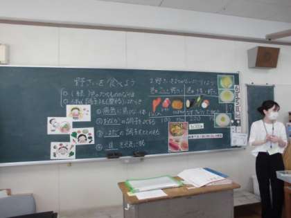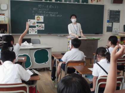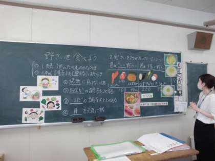 本日は、4年生の栄養教育推進事業がありました。『野菜を食べよう』をめあてに栄養教諭の先生からお話がありました。4年生の子どもたちは、うなずきながら集中してお話を聞いていました。