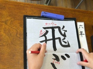 6年生が書写の学習をしていました。「点画もつながりを意識して正しい筆順で書こう」というめあてで、まずは試書しました。次に自分で気づいたことを赤ペンで書いて、清書しました。みんなめあてをもって書くことができました。