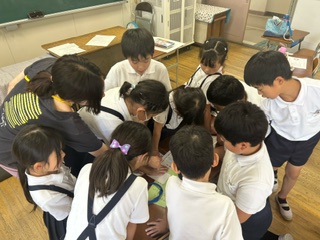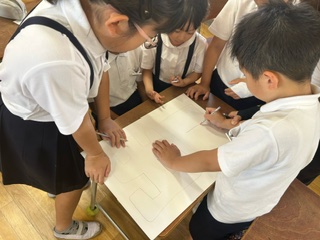 5時間目に全校児童で、南フェスティバルの準備をしました。それぞれ各班の出し物が違うので、準備も異なります。役割を決め、当日のゲームの準備や、看板を作りました。
