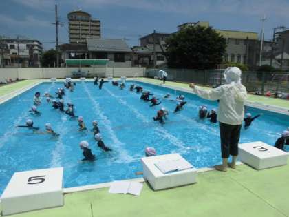 水泳の学習で大切なことやプールの中での約束など、みんなで確認しながら学習を進めました。