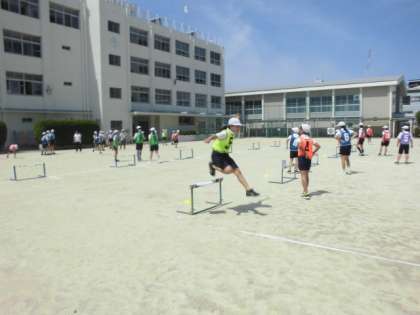 難しいハードルの学習も、子どもたちはリズミカルに跳び、楽しそうに学習に取り組み、めあてに向かって頑張り、みんなで励ましあいや応援の声掛けをし、とても素敵な授業でした。