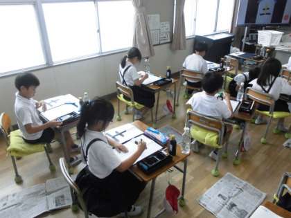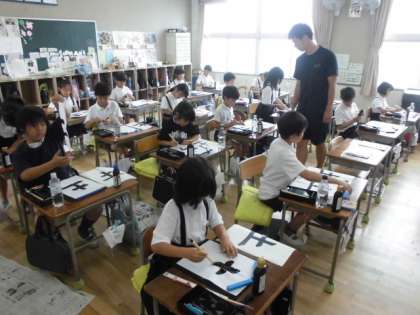 「土」の漢字を一筆一筆、始筆や運筆に気を付けながら書きました。