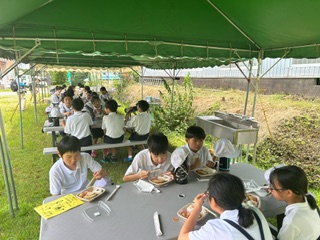 1時間近く渋滞で遅れましたが、みんな元気です。開舎式のあと、昼ごはんを食べ始めています。