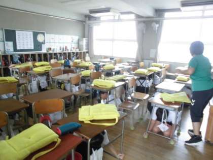 大阪880万人訓練の日に合わせて、本校でも地震と津波に対する避難訓練を行いました。