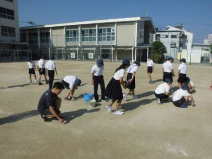 そして、運動場の石拾いもしました。本番に向けてたくさん小石を拾いました。
