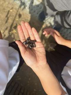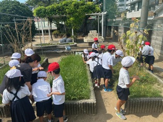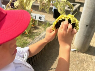 1年生が、学習園で育てていた植物のタネを採取しました。ヒマワリ、マリーゴールド、フウセンカヅラなど、採っては、「これ、また家で植えるねん」とうれしそうに見せにきてくれました。