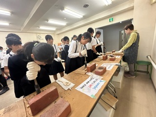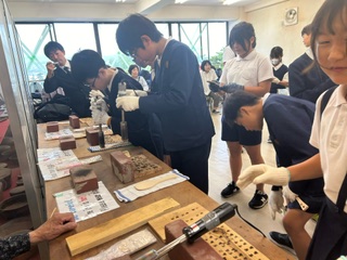 しゃもじのペーパーがけが終わったら焼印です。上手くできるかできないか、気持ちを込めて、1番緊張するときです。
