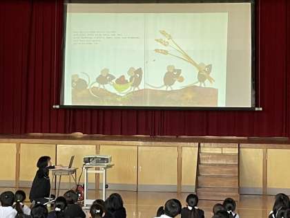 今日は、図書委員会が、レオ.レオニのフレデリックの読み聞かせをしてくれました。