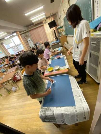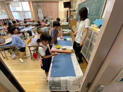 1年生も作品展に向けて今度は、絵画作品作りに取り組んでいます。
