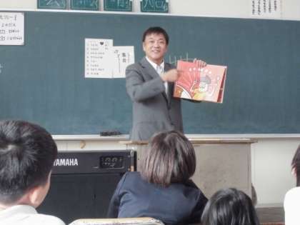 読書週間に合わせ、校長先生の読み聞かせがありました。本日は2年生です。集中してお話を聞きながらも、笑い声がおこったり、「え〜〜」「なんで?」とびっくりした声があがったり、本に親しむ充実した時間となりました。