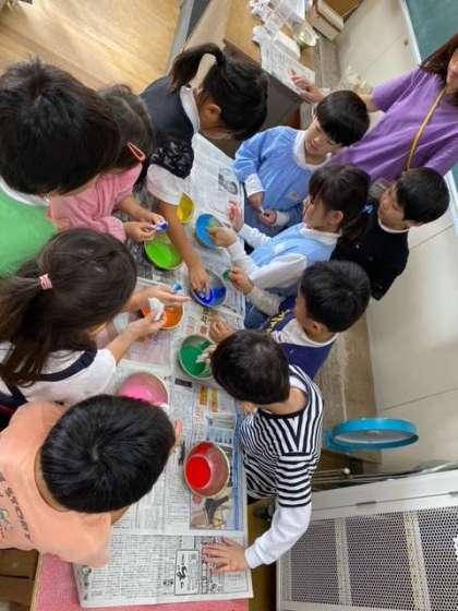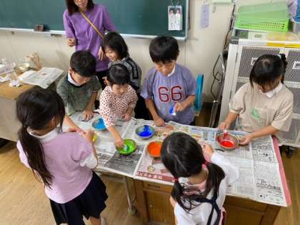 紙を自分の好きな色に染めて、きれいな模様を作りました。