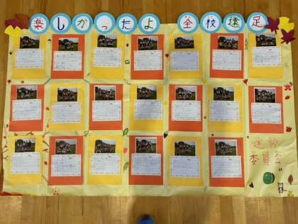 全校遠足が終わって2週間近くたちましたが、楽しかった思いが一人一人に残っているようで、思い出話に思わず笑顔になりながら、楽しい雰囲気で振り返りをすることができました。
