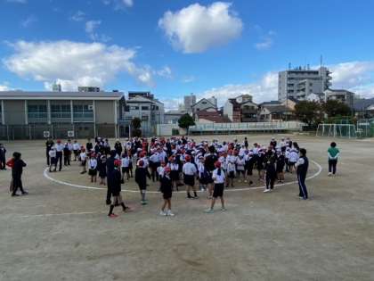 運動委員会の主催で体力づくりの一環として、「誰でも歓迎鬼ごっこ」を子どもたち先生も参加して行いました。