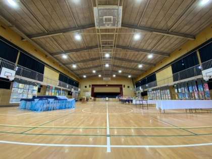 講堂での準備も出来上がってきました。
