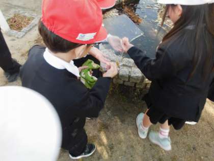 学習園でも、1年生が「めっちゃ、冷たい」「大きな氷!」と歓声を上げていました。子どもたちの楽しそうな表情が見られ、気温は寒いですが、心あたたまる時間でした。