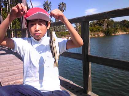 釣り堀(ほとんど海につながった入り江)では、でかい魚をゲットする子も!
