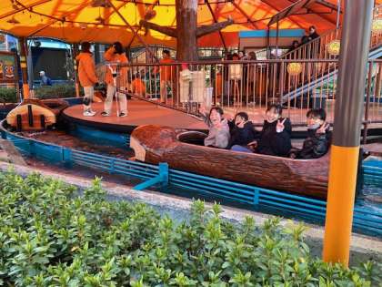 園内に入ると子どもたちはグループごとに、いろんな乗り物を一緒に楽しみました。