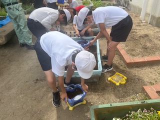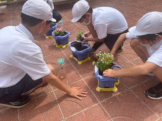 先日から植えている一人一鉢は今日は六年生が、トレニアを植えました。これから水やりが楽しみですね。