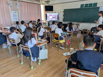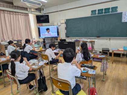 5年生が、全国はみがき大会に参加しました。DVDを見ながら、歯について学びました。