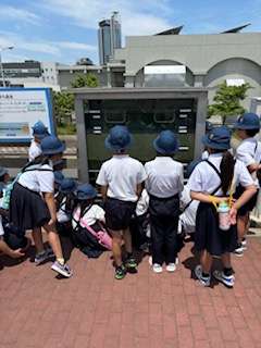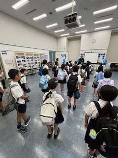 今日は、4年生が、社会見学で柴島浄水場に行きました。着いて、まず見学の流れをお聞きし、浄水のシステムのビデオを見た後、見学に出ました。