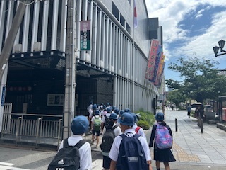 今日は6年生が、国立文楽劇場に来ています。文楽を鑑賞します。演目は、五条橋と三十三間堂棟由来の二つです。なかなか体験できない文楽鑑賞です。楽しみです。