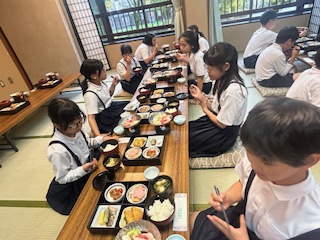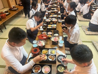 夕食はすき焼きなど和食のメニューでした。「美味しい、美味しい」としっかり食べました。