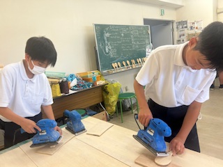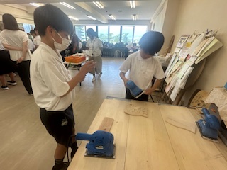サンダーとサンドペーパーで、しゃもじがつるつるになるまで磨きました。