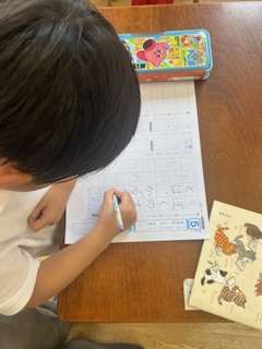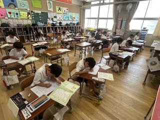 5時間目に1年生が、かきかたの学習をしていました。字を大きくていねいに書く練習です。ていねいに書いてましたので、手に力が入っていましたが、みんなじょうずでした。