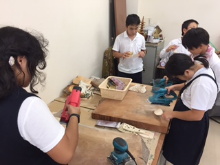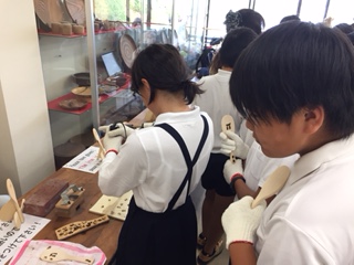 修学旅行最後の体験である「しゃもじ作り」を行いました。