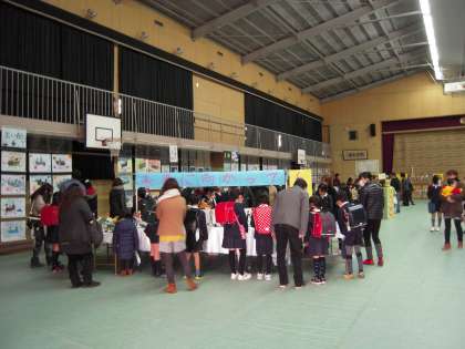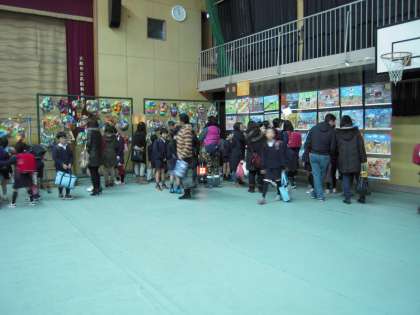 作品展を講堂で行いました。3時間目の学習参観後は、保護者・児童でいっぱいでした!