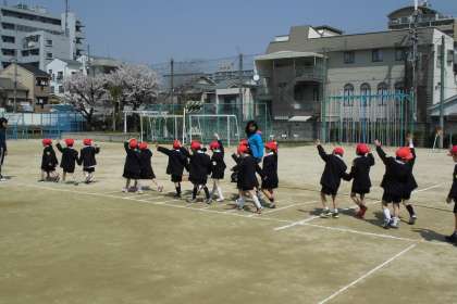 の順に行いました。校外学習で道路を歩く時の歩き方、信号のわたり方、道路の道幅に合わせた歩き方、電車の乗り方・降り方などを学習しました。運動場に模擬道路を書き実際に歩きました。学校の外に出た時に安全に気をつけてこの学習を生かしてほしいと思います。