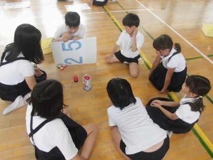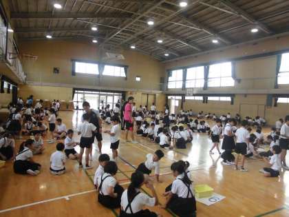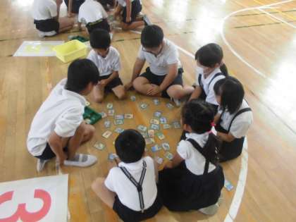 6月22日(木)児童集会です。今回は、昔遊びをしました。けん玉、お手玉、かるた、だるま落としの4種類のあそびををなかよしグループごとでしました。けん玉は難しかったかな?お手玉は、上手にできたかな?かるたの札はたくさん取れたかな?だるま落としは最後まで落とせたかな?毎年1年生では、地域の方と昔遊びでふれあう機会があるので、初めてではありませんが、なかよしグループ(異学年交流)でするのはまた少し違うのではないでしょうか。上級生が下級生に優しく接することができるとても温かい雰囲気の中で行われた集会でした。